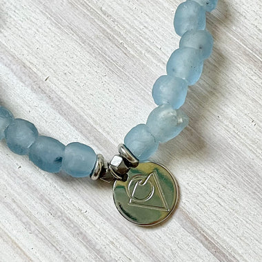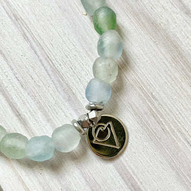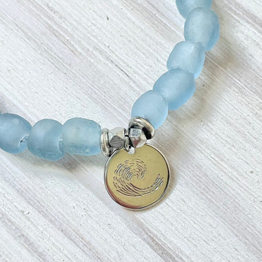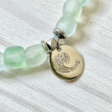 Blue-Green Swirl Glass Saltwater Charm Bracelet