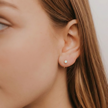 Huggies White Opal Gold Earrings